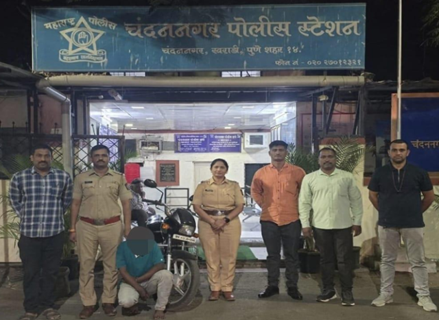 📌 २२ मार्च २०२५ रोजी सायंकाळी ७:३० वाजता चंदननगर पोलीस ठाण्याचे अधिकारी आणि कर्मचारी पेट्रोलिंग करत असताना, सुंदराबाई शाळा, जुना मुंढवा रोड येथे गुप्त माहिती मिळाली. 📌 गुप्त बातमीदाराने पोलिसांना कळवले की चोरीस गेलेली दुचाकी ऑक्सीजन पार्क, मुंढवा रोड येथे एका संशयित व्यक्तीसह उभी आहे. 📌 संशयित इसमाला पोलिसांची चाहूल लागताच तो दुचाकीवरून पळू लागला, मात्र पोलिसांनी पाठलाग करून बॉलिवूड थिएटरसमोर त्याला अटक केली!