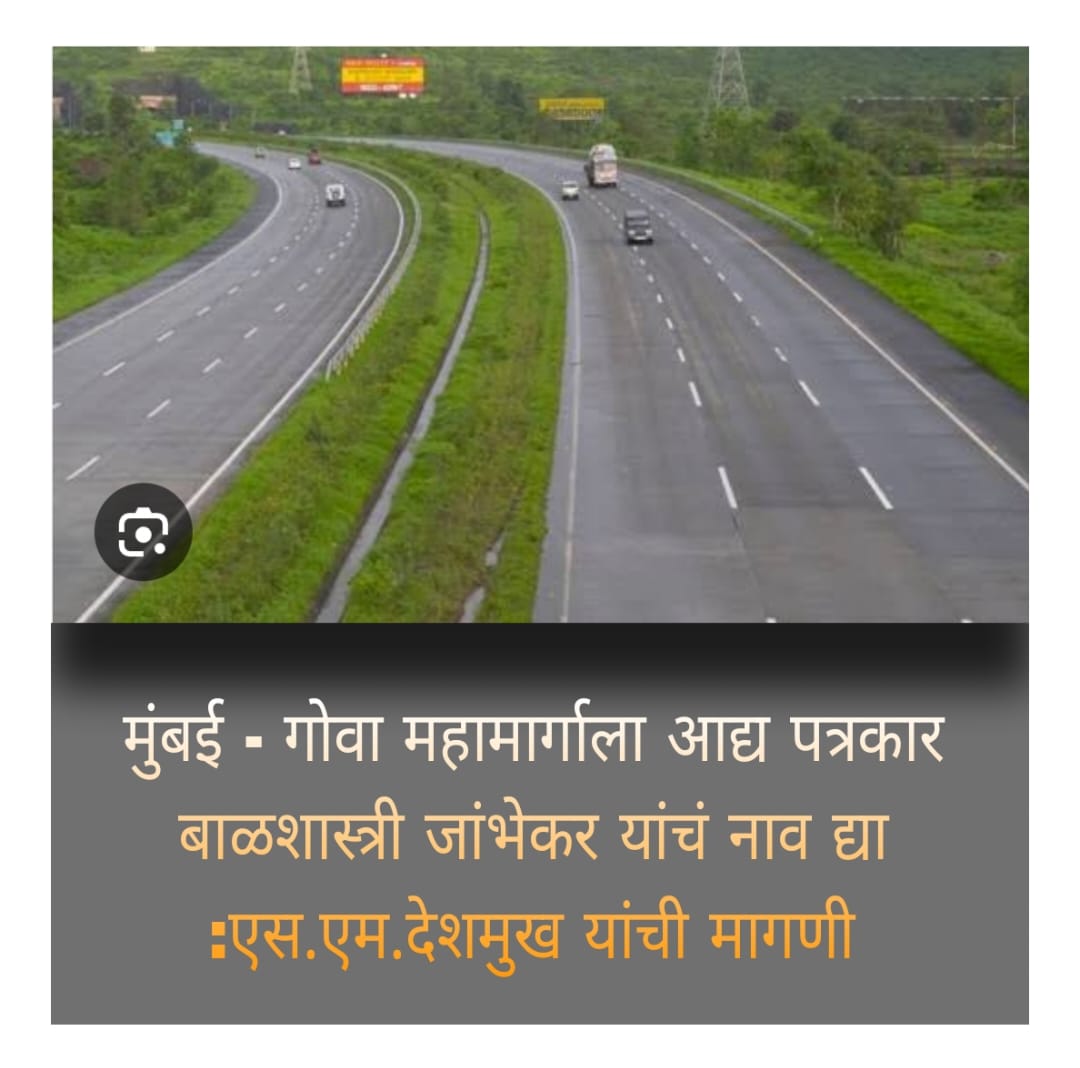 देशमुख म्हणाले, बाळशास्त्री जांभेकर हे केवळ आद्य मराठी पत्रकार नव्हते, तर ते विचारवंत, शिक्षक, सामाजिक कार्यकर्ते, भाषाशास्त्रज्ञ आणि कोकणातील तेजस्वी व्यक्तिमत्व होते. त्यांनी ‘दर्पण’ या मराठीतील पहिल्या वृत्तपत्राच्या माध्यमातून समाजात क्रांती घडवली. त्यामुळे केवळ कोकण नव्हे, तर संपूर्ण महाराष्ट्राने त्यांना महामार्गाच्या नावातून सन्मानित करणे ही काळाची गरज आहे.
