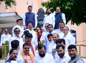 मुंबई : आजपासून सुरू होणाऱ्या महाराष्ट्र विधानमंडळाच्या पावसाळी अधिवेशनाच्या पार्श्वभूमीवर महायुतीतील प्रमुख नेत्यांनी विधानभवन परिसरातील युगपुरुष छत्रपती शिवाजी महाराजांच्या पुतळ्याला कृतज्ञतेने अभिवादन करून आपल्या भूमिकेची ठाम सुरुवात केली.