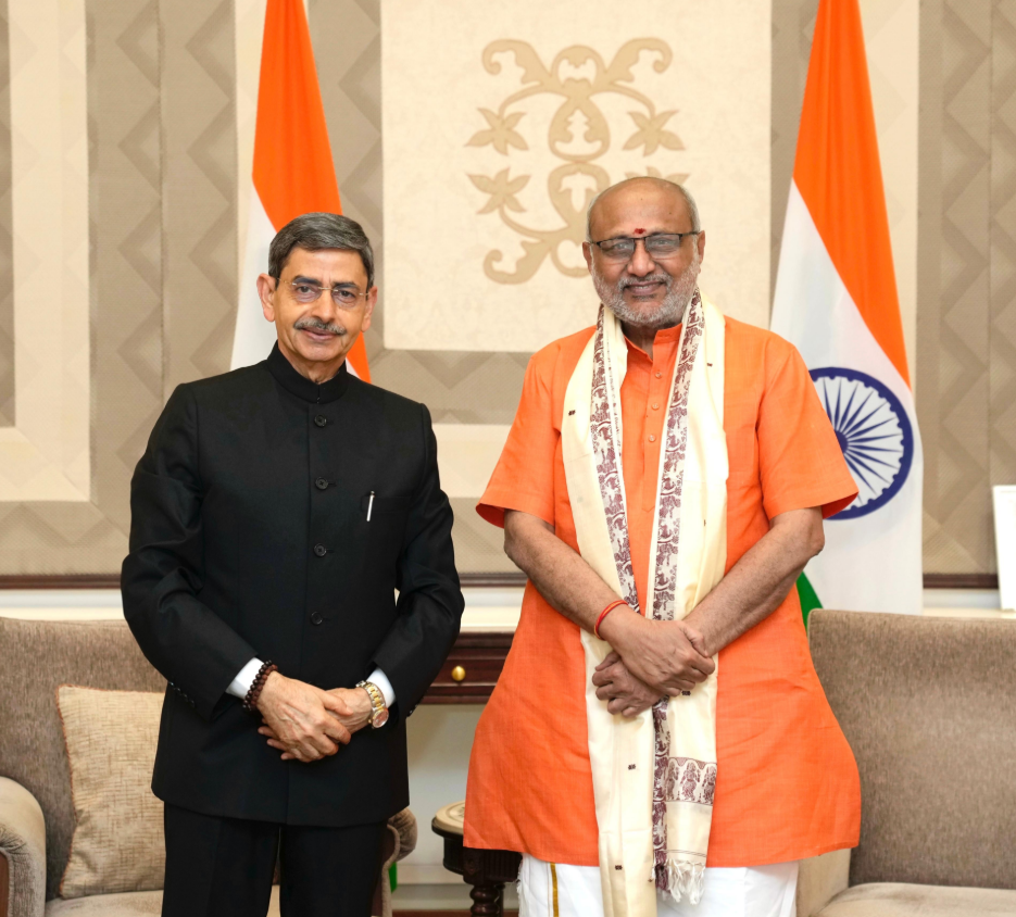 आज नवी दिल्लीतील Uparashtrapati Bhavan येथे पश्चिम बंगालचे राज्यपाल R. N. Ravi यांनी भारताचे उपराष्ट्रपती C. P. Radhakrishnan यांची सदिच्छा भेट घेतली. या भेटीत विविध राष्ट्रीय आणि प्रशासकीय विषयांवर चर्चा झाल्याची माहिती सूत्रांकडून मिळाली आहे.